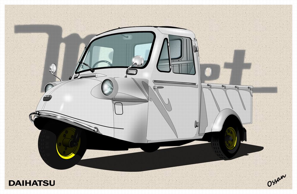 と言うことで、と言いたいところではあるが、バタバタの写真がないので、今回はダイハツのミゼットを描いてみました。