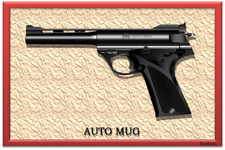 この絵は、オートマグといって、マグナム弾を発射できる、世界初の自動拳銃で、モデルガンを購入し火薬を詰めて撃った時の反動に感激したものであった。